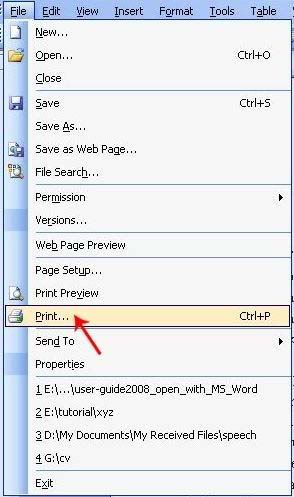 Okay, say we want to convert a Microsoft Word (.doc) file into PDF (.pdf). Go to File and choose Print.